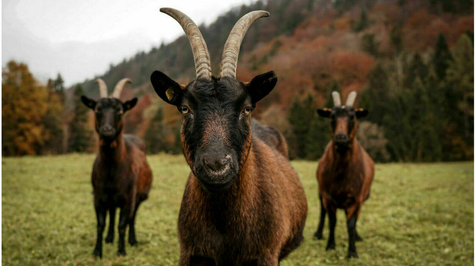 Gemeinsam mit den Hochlandrindern leben auch drei Pinzgauer Ziegen auf unserem Hof. Heide, Susi und Emma.